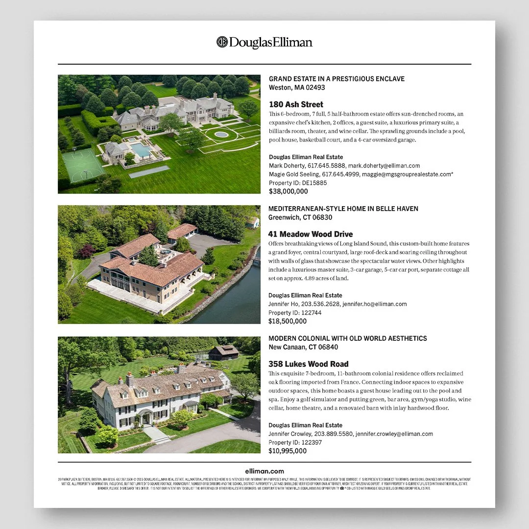 | Art Basel | Automobile Magazine | Boston Common | Boston Globe | Boston Magazine | Financial Times | Mansion Global | Nantucket Magazine | New York Post | Wall Street Journal | Wellesley Weston Magazine